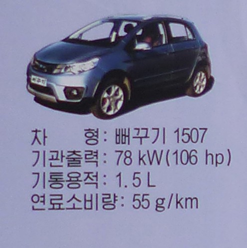 Seen since 2013. Chinese Great Wall C20R (CC7152B), rebadged Chinese vehicles or locally skd produced. Name Ppeokpuggi translated as Cuckoo. From the Pyonghwa Auto Works, Nampo. Hatchback, 5-door, 5-seat, 1.5-litre 75 kW gasoline engine.